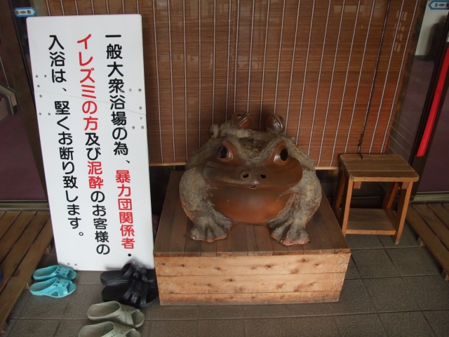 玄関を入るとこのでかいカエル・・・いつもすごい置物だなぁ