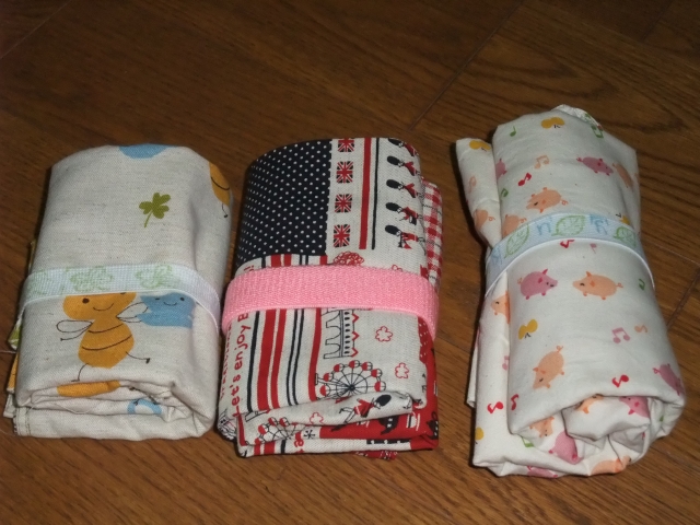 エコバックトリオの完成です。ちょっと厚みのある生地で