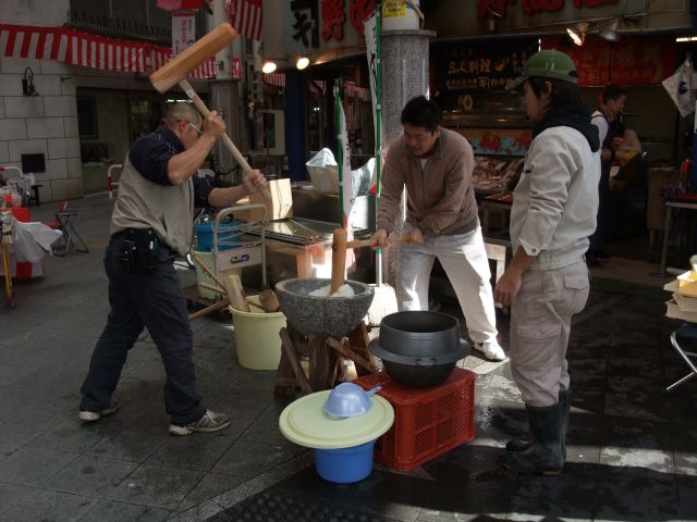 声かけしてもちつきをすると、歩いている人たちも