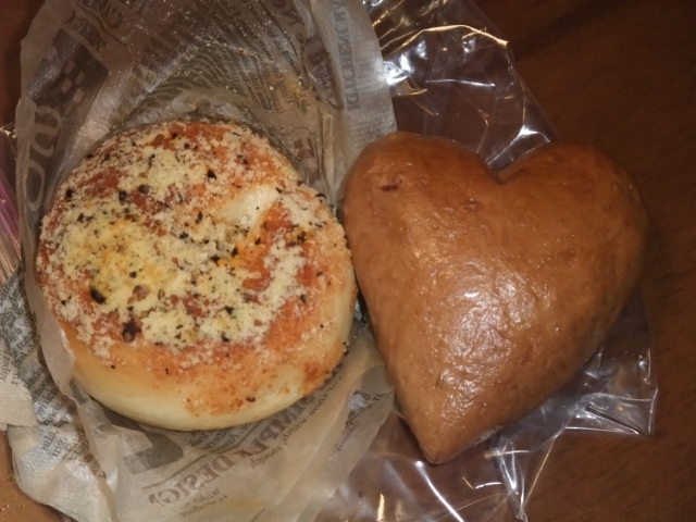 (生地にポルチーニバターを巻き込んだもの)右がクランベールのベーグル。