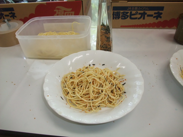 早速今日のお昼ご飯は、湯がいたパスタを持っていって