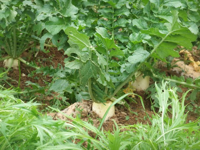 ちょっと顔を出しかけている大根。
