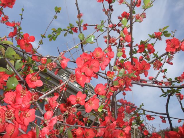 ぼけの花。名前がちょっと・・・ですが、真っ赤で