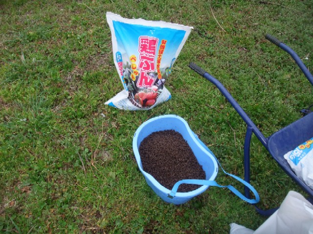 なので、ハウスの中で肥料まき。