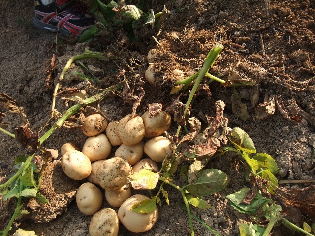 じいちゃんがクワで掘って私がジャガイモを拾っていくという