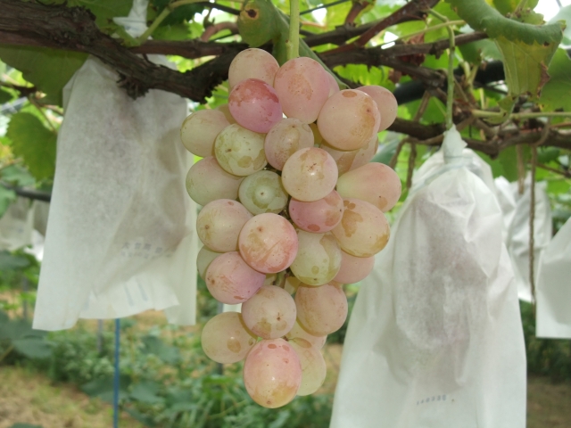 普通ぶどうには袋をかけるので色が付いたかどうかは