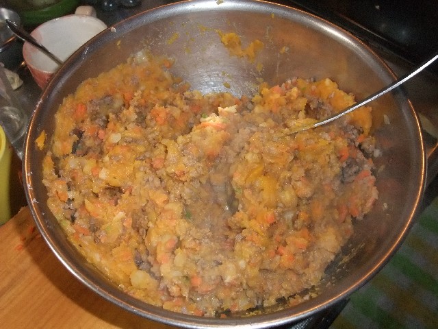 ミンチとたまねぎ、にんじんはもちろんみじん切りにして