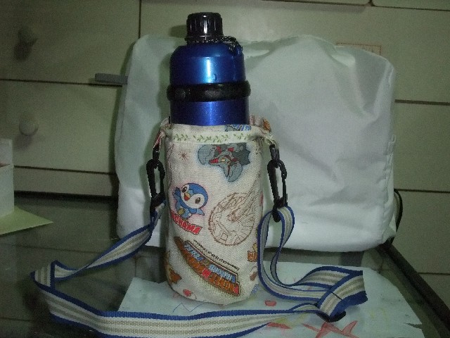 教科書とかないから、手提げにそのまま水筒をつっこんで