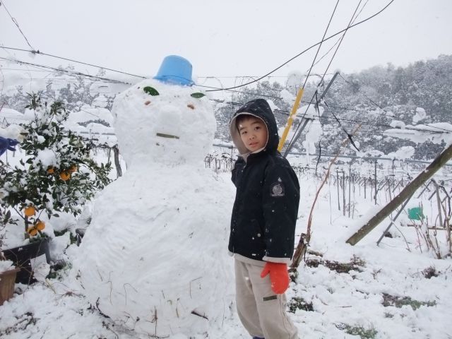 長男と次男はけっこう喜んで雪だるまと並んだけど