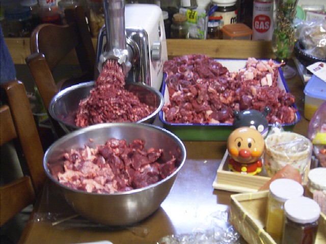とうちゃんが、せっせこミンサーでミンチ作り・・・おかげさまで8kgくらいの