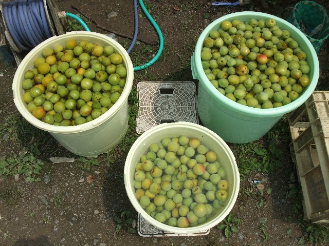 あまりに熟しすぎるとボトッと落ちてしまいますが、梅干用の梅は