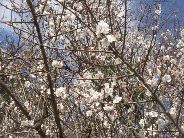 トンネルのピオーネのそばにある梅はもう満開を通り過ぎて