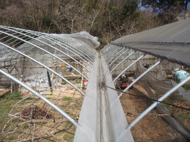現在こちらのピオーネハウスの上のビニールがはがれてしまって