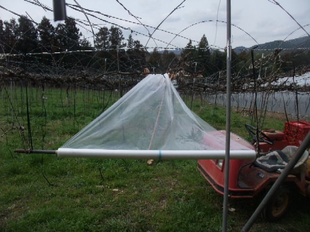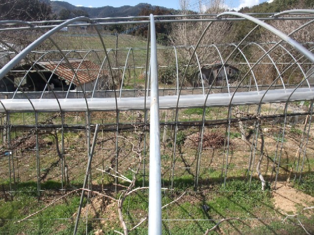 ピオーネハウスの上のビニールをはるための準備。