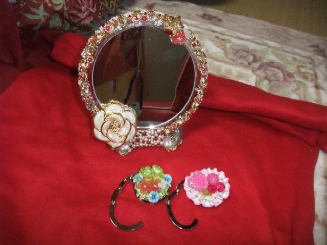 上の画像は、ねえちゃんの作品のほんの一部ですが、デコ鏡と