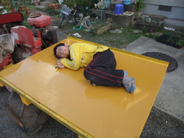 運搬を一輪車&軽トラでやっていますが、とうちゃんとじいちゃんは