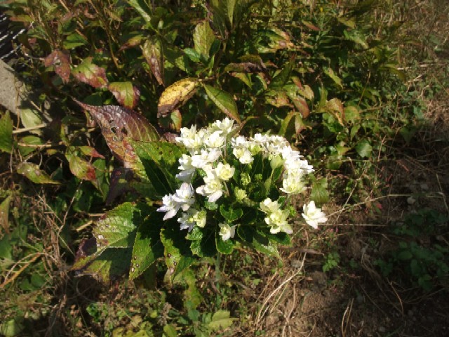 ふと見るとなんとっ・・・あじさいがひとつだけ咲いてる。