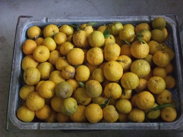 たった2本しかないゆずの木ですが、ぶどうのちぎりカゴに山盛り