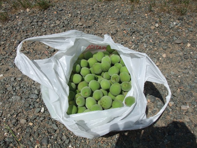このまま袋をかけてしまうと、色がつくころには粒がぶつかりあって