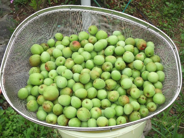 農家の生活昨日、洗って水に漬けた梅を朝ザルに出して午前中いっぱいくらい