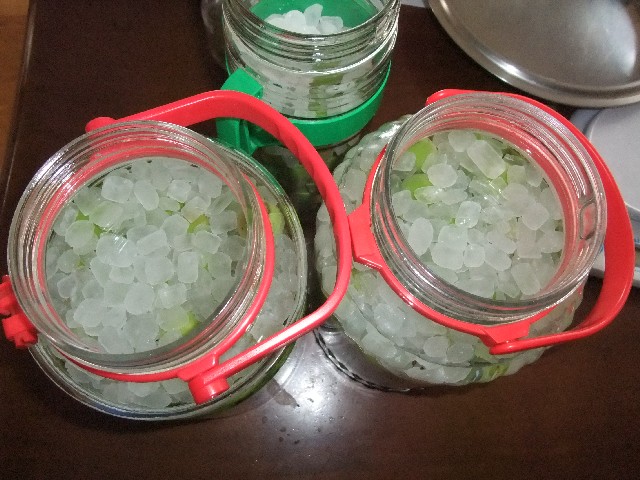 あるだけ梅を入れて氷砂糖は500g、ホワイトリカーは1.8リットル