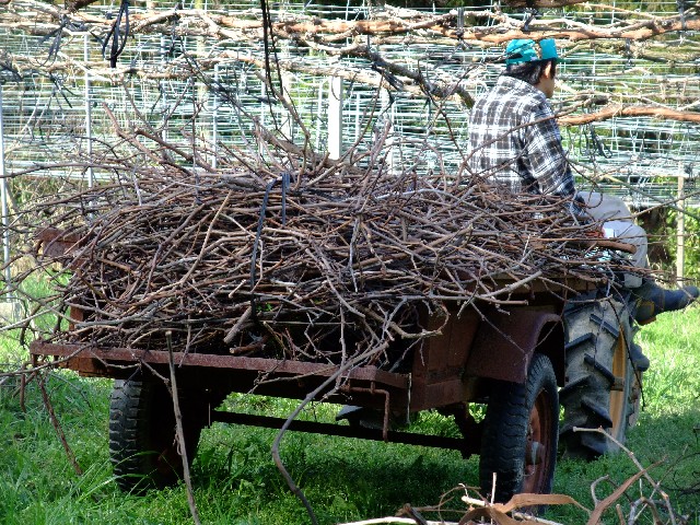 ロザリオの剪定が終わったので、その枝をかたづけています。