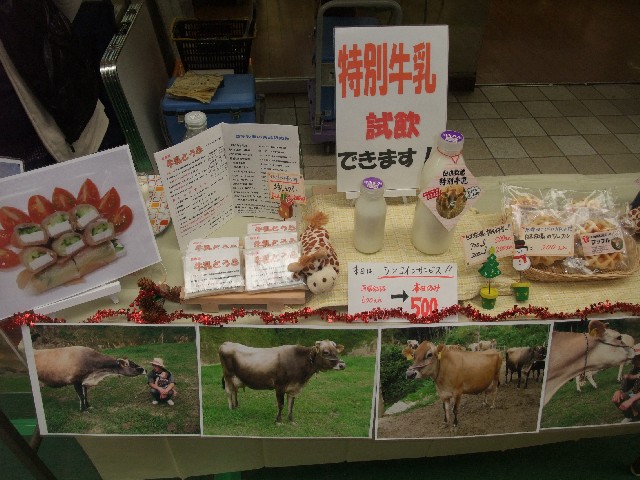 うちも「たべりー」の前で特別牛乳の白木牧場さんと