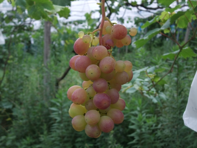 普通ぶどうには袋をかけるので色が付いたかどうかは