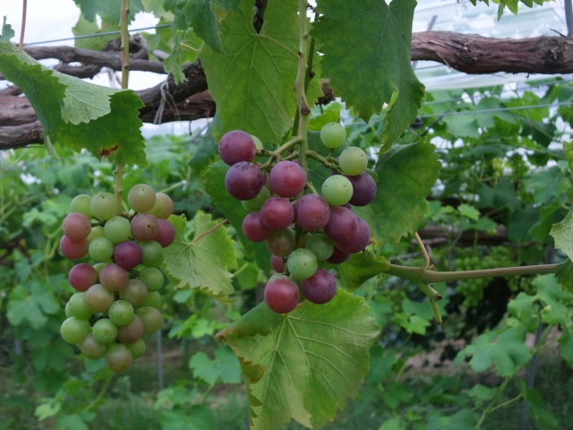 トンネルのピオーネの中には、ちょこちょこと翠峰も植えています。