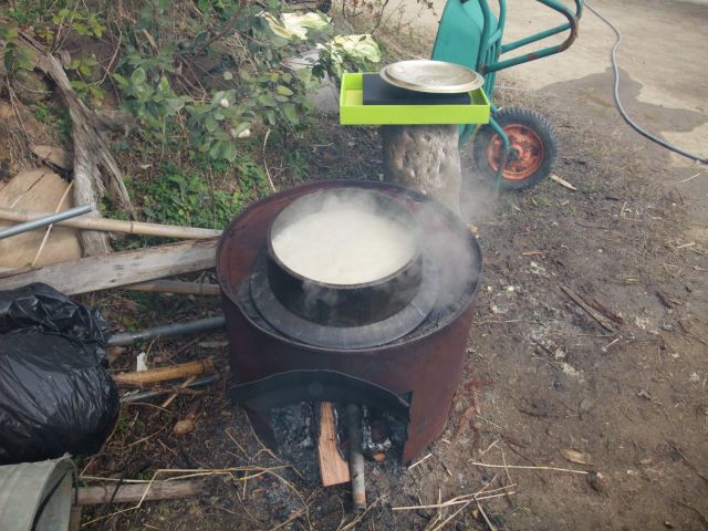 今回もシシを解体したあとの骨をこのカマに放り込んで