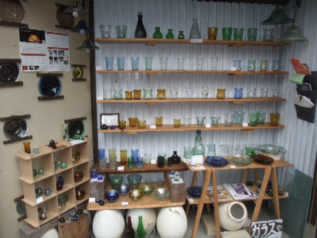 工房の前には、こちらの商品でもあるガラスの器がズラリ。