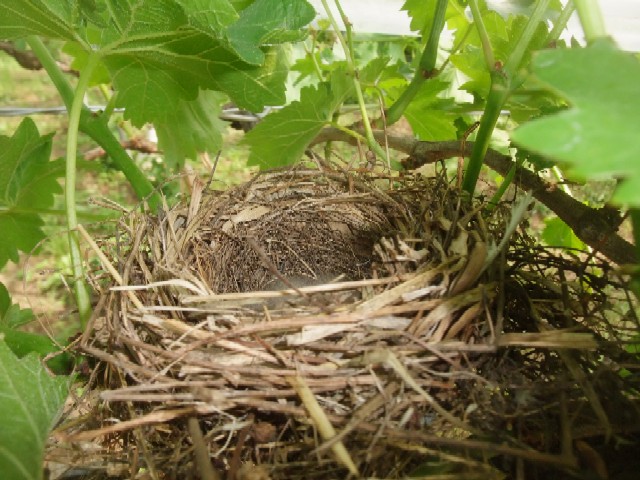 こんな鳥の巣、葡萄園の棚線の上にちょこちょこあるんだけど