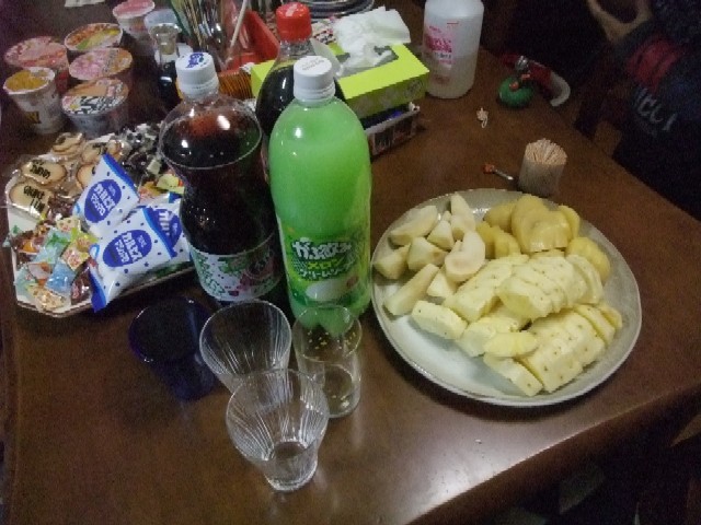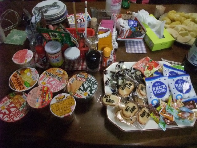 あとは、お菓子を少々・・・特にカップ麺は三人とも
