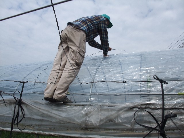 農作業ハウスの方はちょっと前に全てビニールをかけ終わって