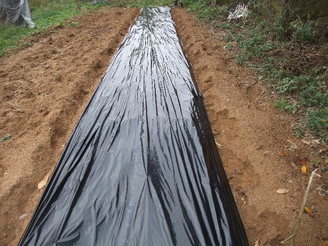 とはいえ約60mくらいあるポリを端っこからひっぱるのは