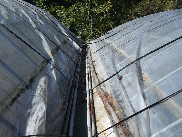 ハウスの上のビニールを2棟分はずしていなかったので