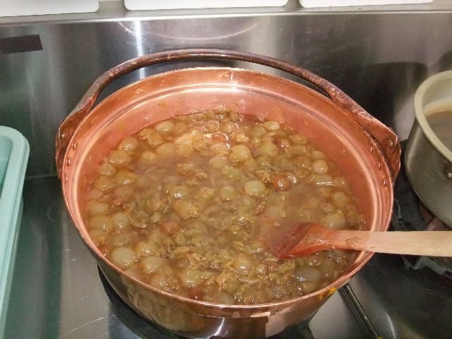 そして、実と残りの砂糖も加えて煮詰めていくのです。