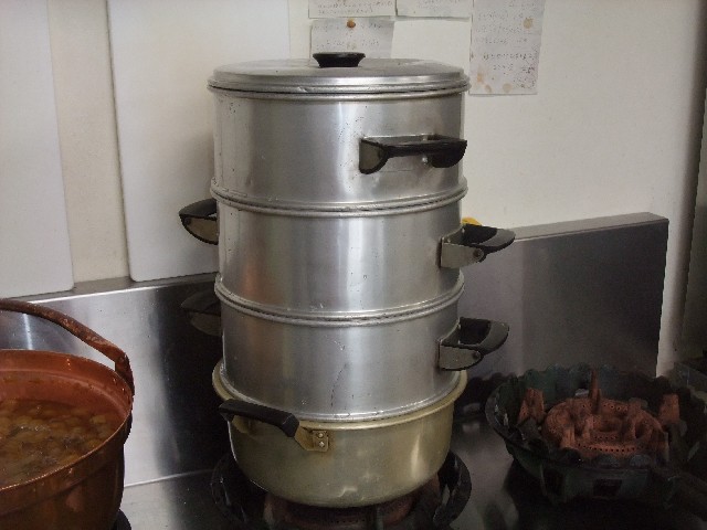 うちは、餅つきのときにも使う蒸し器で煮沸消毒をします。