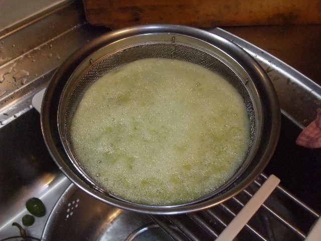 ホントはふきんなどで濾して絞るとにごりもなくきれいなのですが