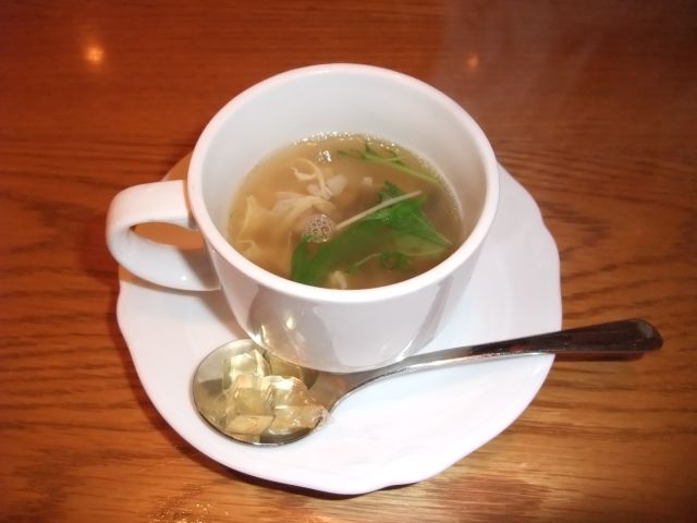 スープは、スプーンにコラーゲンが乗っていてスープに入れて
