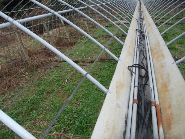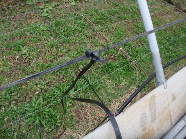 ハウスの上の部分にビニールを貼ったあと、固定させるために
