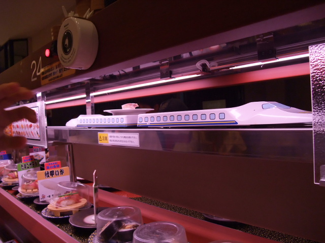 新幹線が注文した寿司を運んでくるわけです。