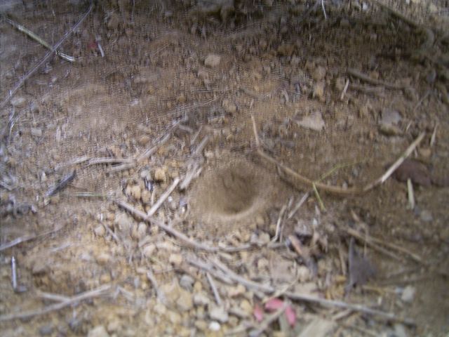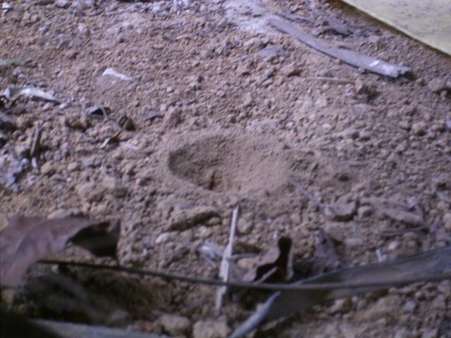 ウスバカゲロウの巣。中にまだウスバカゲロウが