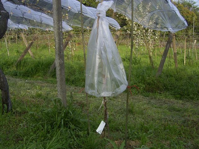 まだ植えたばかりの巨峰の上にビニールをかぶせているのです。