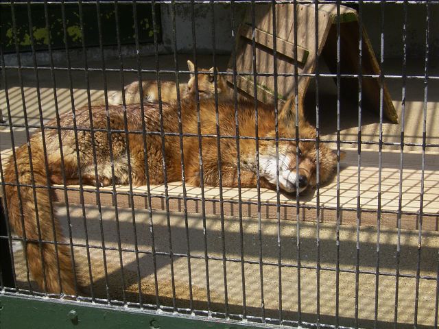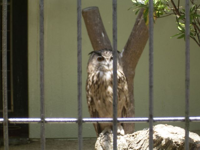 お昼ね中のキツネ、真っ赤なインコ、まるで置物のようなミミズク。