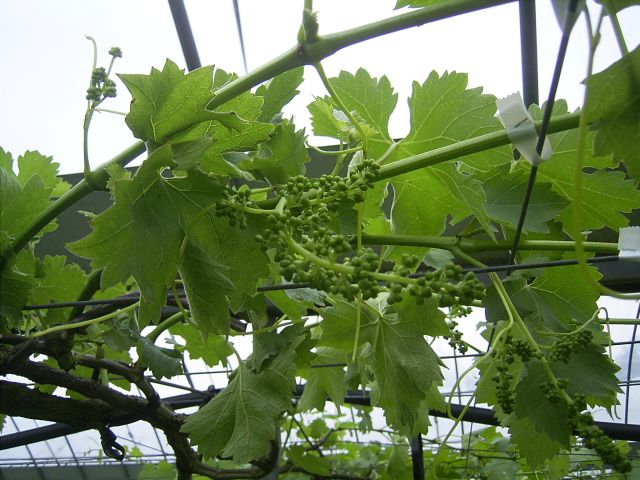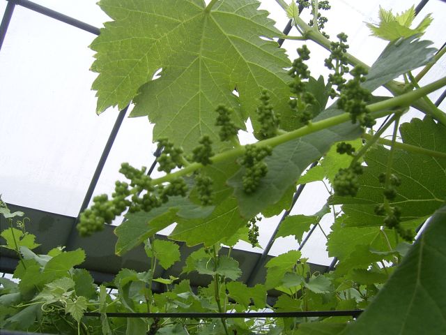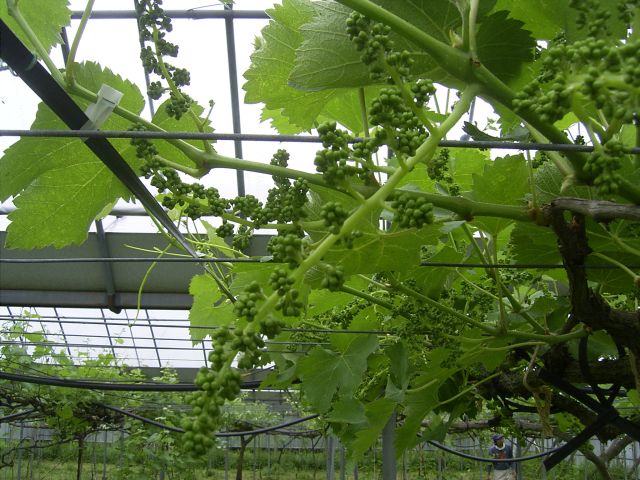 いつもは巨峰のハウスの方が早いのですが、今年はピオーネハウスのピオーネがけっこう早く成長しています。