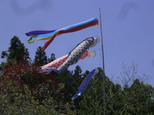 なかなかこんなふうに、いい感じに泳げないのよね、このこいのぼりたち。