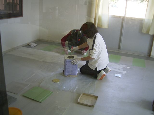 今日は、直売所の店舗部分の床はりをしました。