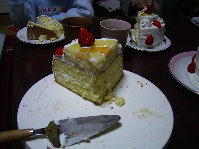 とりあえず上段のケーキは、はずして下の二段分のケーキをみんなで切って