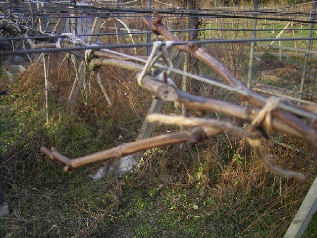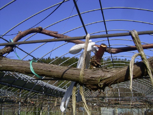 状態となるので、棚線に枝をバインダー紐でくくりつけてやる作業のことです。